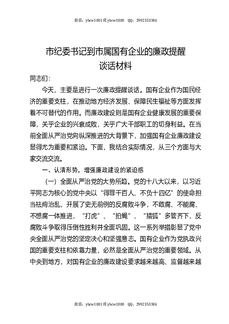 市纪委书记到市属国有企业的廉政提醒谈话.docx