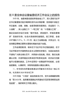 在X委全体会议暨省委经济工作会议上的报告.docx