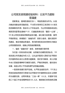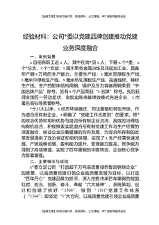 经验材料:公司党委以党建品牌创建推动党建业务深度融合