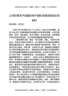 公司纪委关于加强纪检干部队伍建设经验交流材料