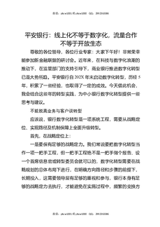 平安银行:线上化不等于数字化,流量合作不等于开放生态.docx