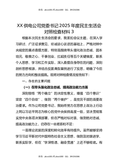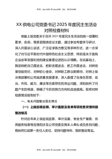 XX供电公司党委书记2025年度民主生活会对照检查材料3.docx