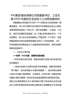 XX(集团)股份有限公司党委副书记,工会主席2025年度民主生活会个人对照检查材料.docx