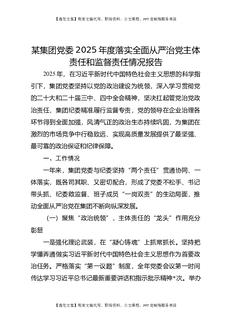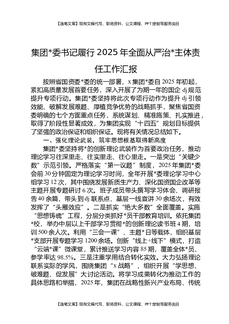 集团党委书记履行2025年全面从严治党主体责任工作汇报.docx