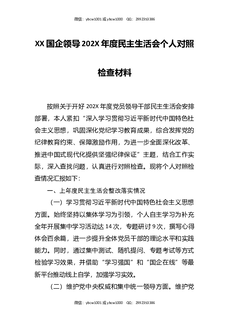XX国企领导202X年度民主生活会个人对照检查材料.docx