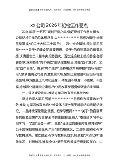 XX公司2026年纪检工作要点.docx