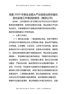 党委2025年落实全面从严治党政治责任强化党内监督工作情况的报告(集团公司).docx