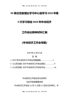 XX单位党委理论学习中心组学习202X年第X次学习领会202X年中央经济工作会议精神材料汇编(中央经济工作会专题).docx