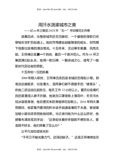 用汗水浇灌城市之美(记XX环卫集团202X年劳动模范王师傅).docx