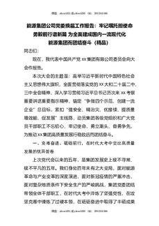 能源集团公司党委换届工作报告:牢记嘱托担使命勇毅前行谱新篇为全面建成国内一流现代化能源集团而团结奋斗(精品).docx
