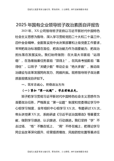 2025年国有企业公司领导班子政治素质自评报告.docx