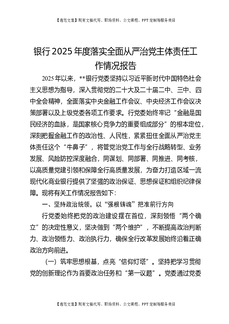 银行2025年度落实全面从严治党主体责任工作情况报告.docx