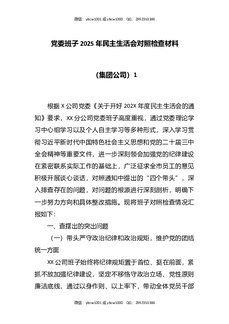 党委班子202X年民主生活会对照检查材料(集团公司)1.docx