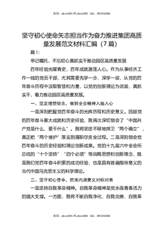 (7篇)坚守初心使命,矢志担当作为,奋力推进集团高质量发展范文材料汇编.docx