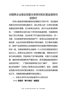 对烟草企业落实党委主体责任和纪委监督责任的探讨.docx