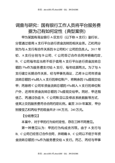 调查与研究:国有银行工作人员将平台服务费据为己有如何定性(典型案例).docx