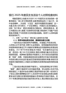银行2025年度民主生活会个人对照检查材料.docx