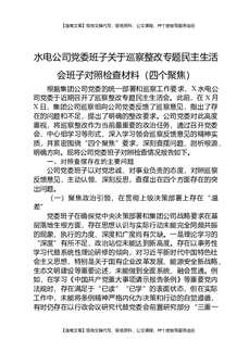 水电公司党委班子关于巡察整改专题民主生活会班子对照检查材料(四个聚焦).docx
