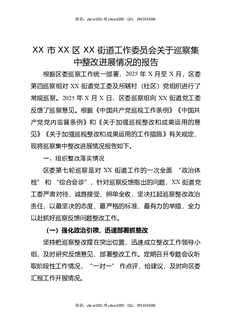 XX市XX区XX街道工作委员会关于巡察集中整改进展情况的报告.docx