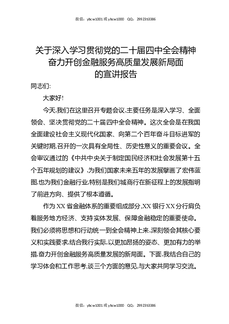 关于深入学习贯彻党的二十届四中全会精神,奋力开创金融服务高质量发展新局面的宣讲报告.docx