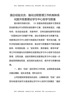 国企经验交流:强化过程管理工作机制体系化提升党委理论学习中心组学习质量.docx