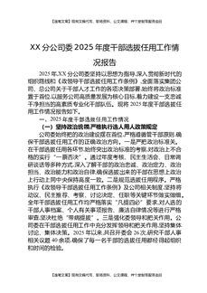 XX分公司党委2025年度干部选拔任用工作情况报告.docx