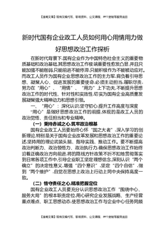 新时代国有企业政工人员如何用心用情用力做好思想政治工作探析.docx