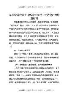某国企领导班子2025年度民主生活会对照检查材料.docx
