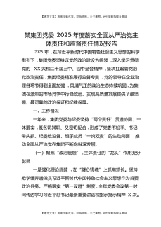 某集团党委2025年度落实全面从严治党主体责任和监督责任情况报告.docx