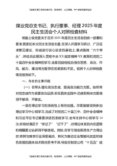 煤业党总支书记、执行董事、经理2025年度民主生活会个人对照检查材料.docx