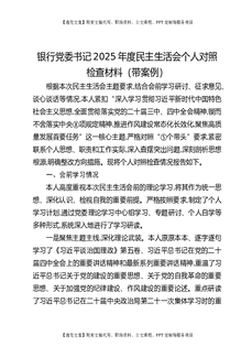 银行党委书记2025年度民主生活会个人对照检查材料(带案例).docx