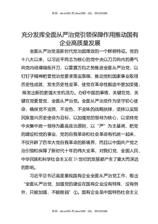 充分发挥全面从严治党引领保障作用推动国有企业高质量发展.docx