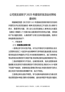 公司党支部2025年度组织生活会班子对照检查材料(六个对照).docx