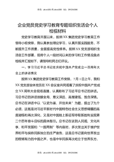 企业党员党史XX教育专题组织生活会个人检视材料.docx