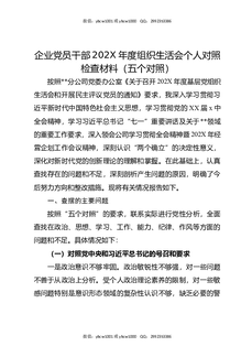 企业党员干部202X年度组织生活会个人对照检查材料(五个对照).docx