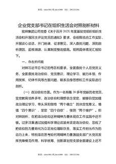 企业党支部书记在组织生活会对照剖析材料.docx