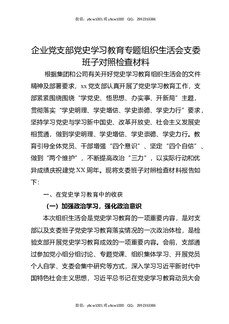企业党支部党史XX教育专题组织生活会支委班子对照检查材料.docx