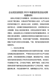 企业党支部党员202X年度组织生活会对照检查材料.docx