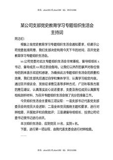 某公司支部党史教育学习专题组织生活会主持词.docx