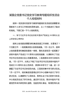 某国企党委书记党史XX教育专题组织生活会个人检视材料.docx