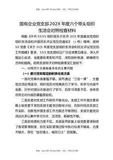 落实上级党组织工作部署方面存在的问题国有企业党支部202X年度六个带头组织生活会对照检查材料.docx