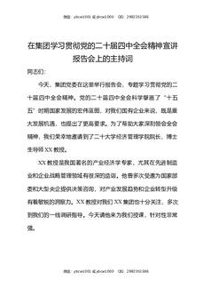 在集团学习贯彻党的二十届四中全会精神宣讲报告会上的主持词.docx