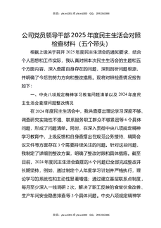 公司党员领导干部2025年度民主生活会对照检查材料(五个带头).docx
