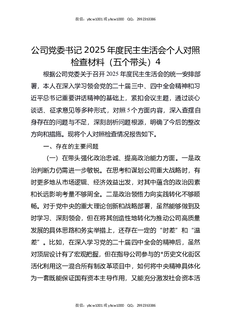 公司党委书记2025年度民主生活会个人对照检查材料(五个带头)4.docx