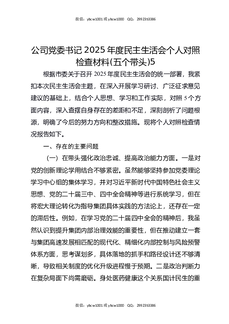 公司党委书记2025年度民主生活会个人对照检查材料(五个带头)5.docx