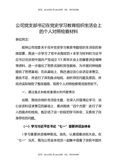 公司党支部书记在党史XX教育组织生活会上的个人对照检查材料.docx