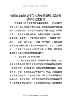 公司党支部党史XX教育专题组织生活会班子对照检查材料.docx