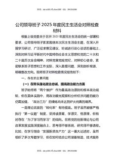 公司领导班子2025年度民主生活会对照检查材料.docx