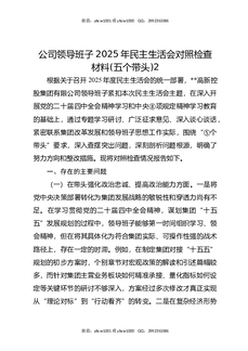 公司领导班子2025年民主生活会对照检查材料(五个带头)2.docx