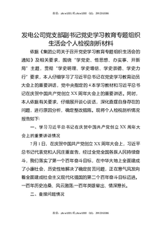 发电公司党支部副书记党史XX教育专题组织生活会个人检视剖析材料.docx
